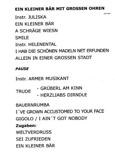 Setliste - Haus der Begegnung Floridsdorf (22. November 2004)
