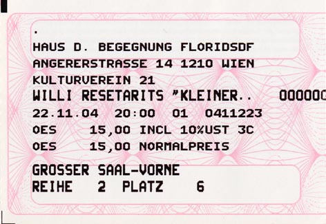 Eintrittskarte - Haus der Begegnung Floridsdorf (22. November 2004)