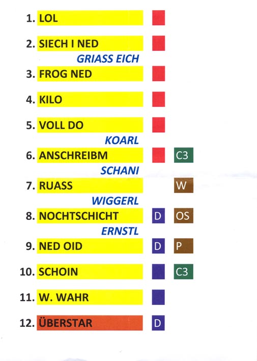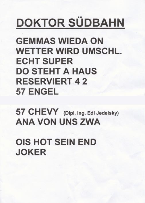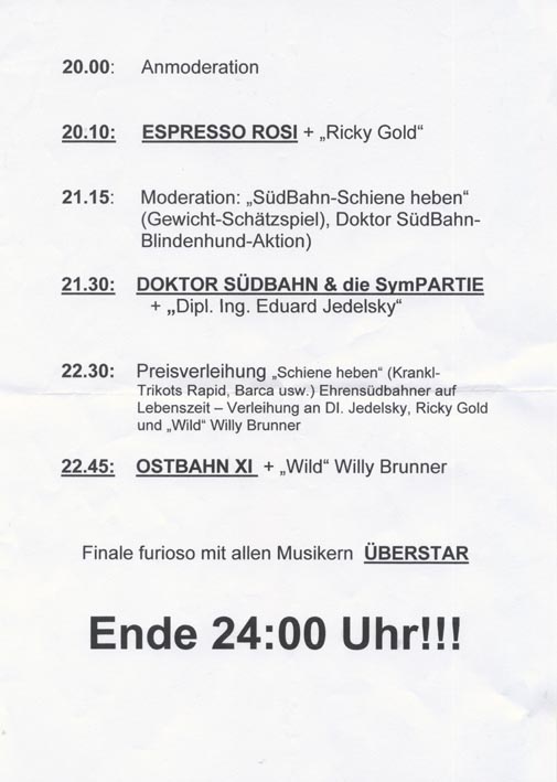 1. Wiener Kurtologengipfel: Originalsetlisten Szene Wien