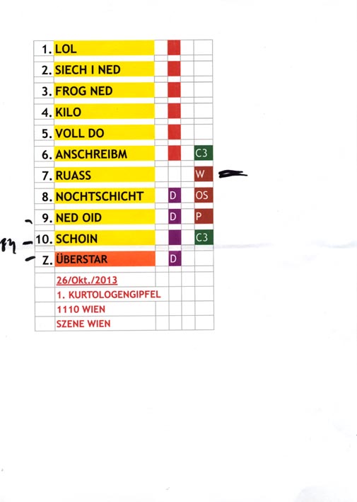 1. Wiener Kurtologengipfel: Originalsetlisten Szene Wien (26. Oktober 2013)