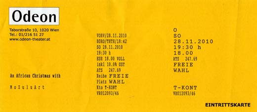 Eintrittskarte MoZuluArt im Odeon (28. November 2010)